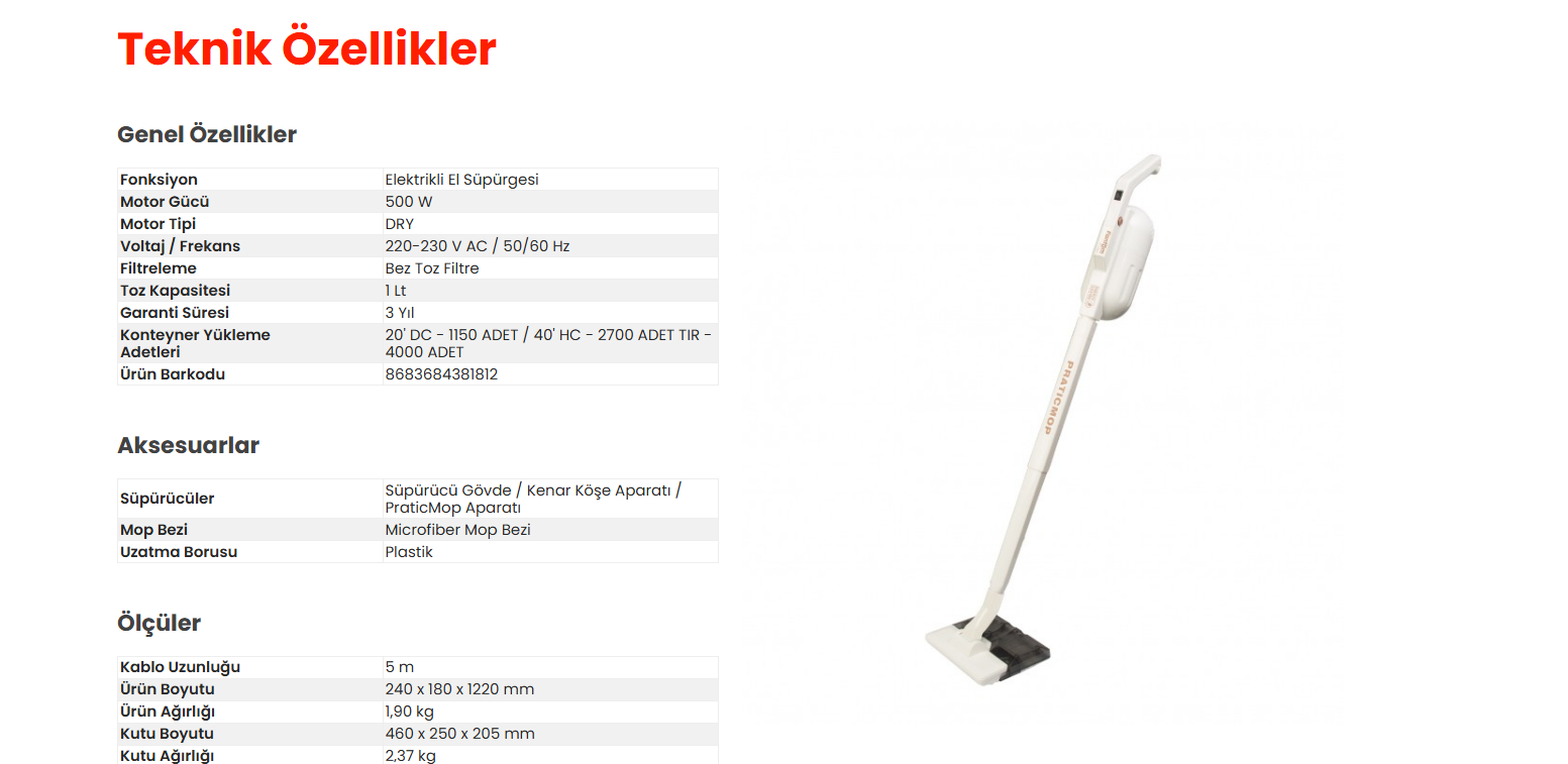 Fantom Pratıc Mop P 1400 Elektrikli Süpürge Krem